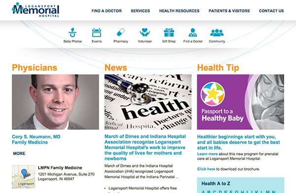 Defining a structured grid layout like on the Logansport Memorial website is one way to