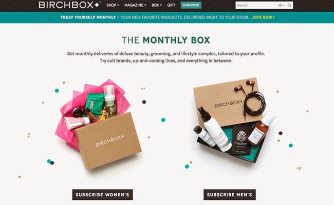 The Birchbox website features it’s subscription services on its homepage in a clean, straightforward format.