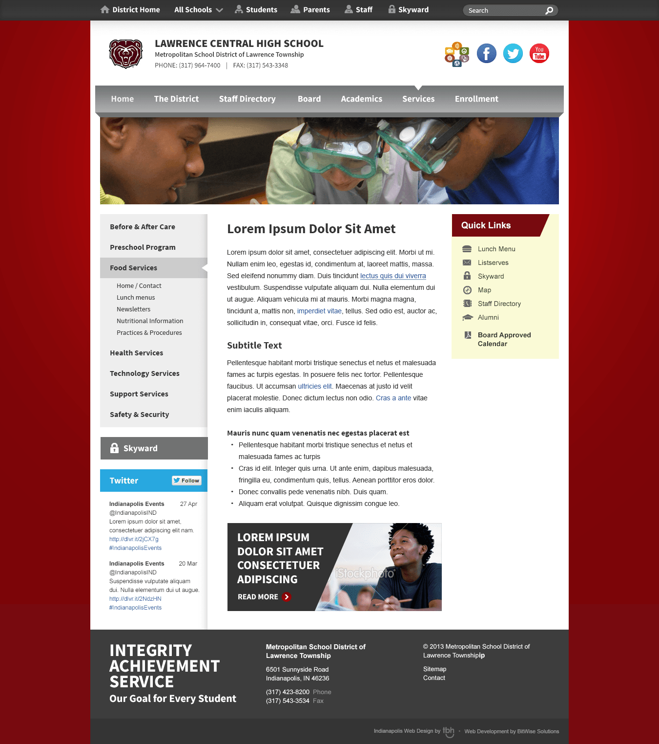 Located just outside of Indianapolis, the Metropolitan School District of Lawrence Township serves approximately 15,000 students across four Early Learning Centers, eleven Elementary Schools, two Middle Schools, two High Schools and a Center for Innovation and Technology. Learn more at: https://www.ltschools.org/Do you need to pull many different divisions together under one website roof? TBH Creative can help. Our services range from website design to application development, from mobile solutions to social media strategies. Learn more about our Indianapolis website design firm and share your Internet challenge with us. We look forward to helping you.