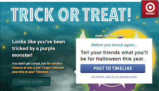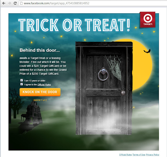 In addition to customizing their cover photo, Target is engaging their Facebook fan base through an interactive Halloween promotion called “Trick or Treat.” The promotion gives customers a chance to win a $20 GiftCard or the grand prize of $250 GiftCard.