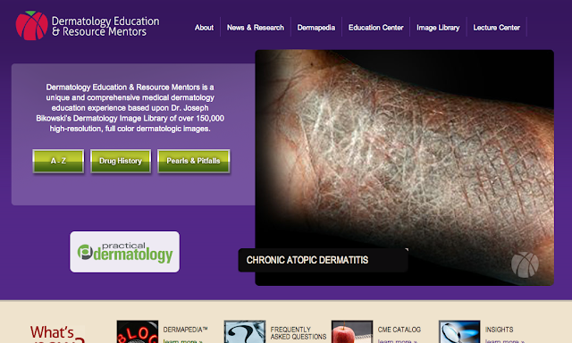 Dermatology Education & Resource Mentors has a well-thought out and organized website. The large images and bright colors draw users in and makes them want to learn more.