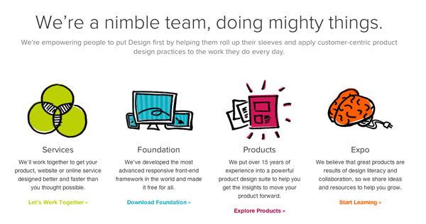 Zurb.com uses a grid-based design to achieve a balanced, well-structured appearance.