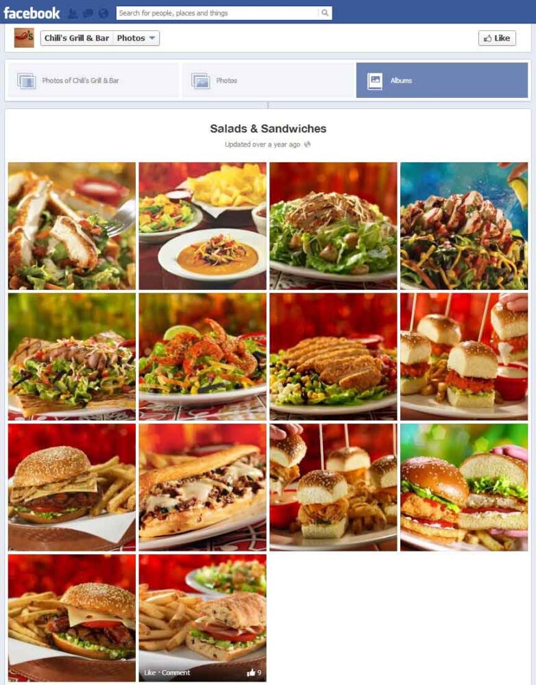 Chili’s has a helpful photo album for “Salads & Sandwiches” that includes more imagery for meal selections than their printed menu does!