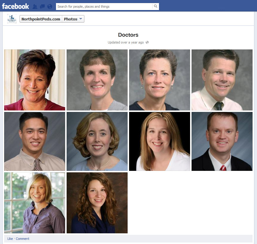 Northpoint Pediatrics uses a photo album to introduce their team of pediatricians on their Facebook page.