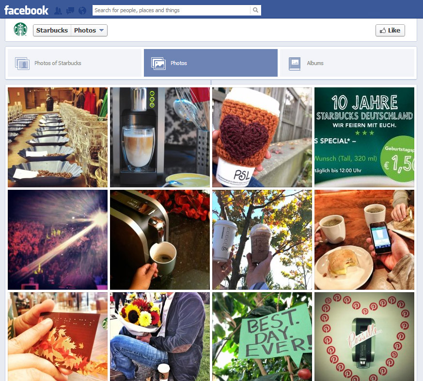 Starbucks’ main photo tab shows an assortment of photos and continues to grow.