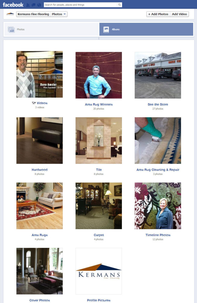 Kermans Flooring in Indianapolis has done a nice job organizing their photo albums to focus on the main interests of their customers.