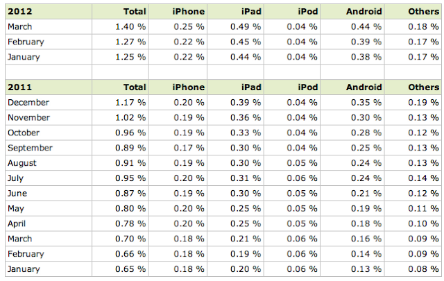 W3Schools has collected data on mobile device usage since January of 2011. As you can see, mobile device usage has dramatically increased over the last year: