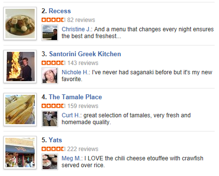 | Screengrab of recent Yelp! reviews for local Greek restaurants |