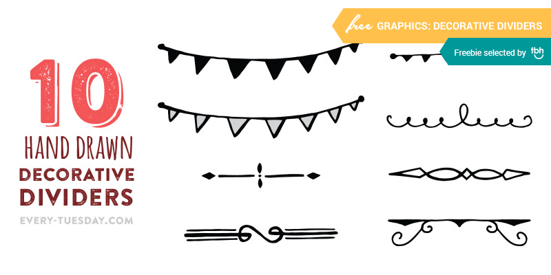 Use this decorative divider graphic set from Every Tuesday to give your design project an illustrated look and feel. They are perfect for invitations and announcements, or for an illustration-style website.