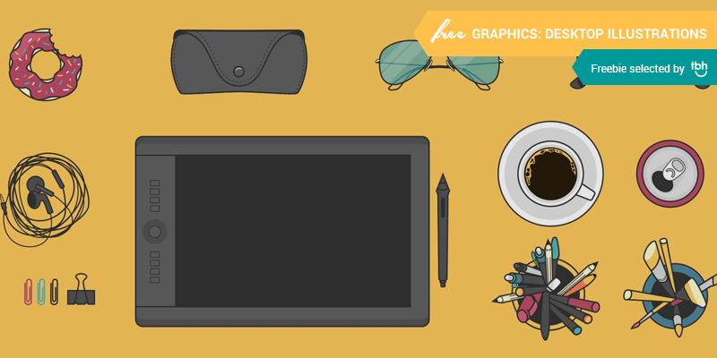 This graphic set of flat-style desk object illustrations by Creatticon is a perfect fit for creating hero graphics for your website.