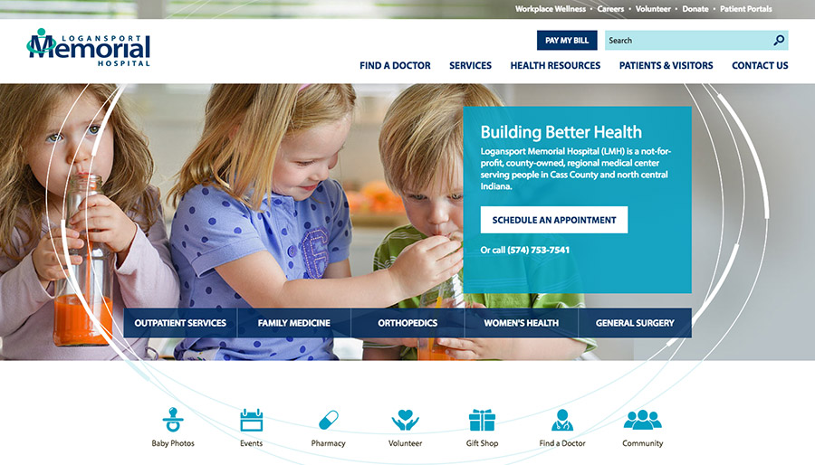 The Logansport Memorial Hospital navigation is simplified and organized into clear sections to make it easy to find information.