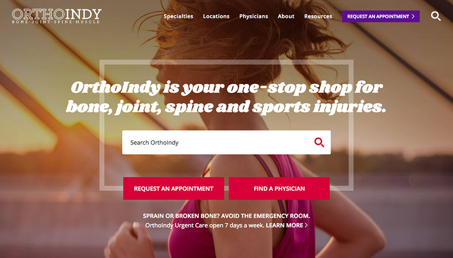 Even with clear navigation and organized content, some users will still be unsure of where to go when they visit your website. Therefore, it’s beneficial to include a search feature on your website to account for users that aren’t sure how to find what they need or just want to quickly find specific information. This is especially crucial on hospital websites with a wide variety of content and a larger number of pages. The faster a user can find what they are looking for, the more likely they are to stay on your website longer.The search feature is prominently placed on the OrthoIndy website to help users find information quickly and easily.