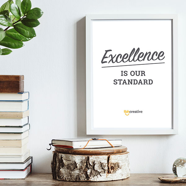 Once you’ve defined those core values and internal goals, you can draw inspiration for your external marketing that aligns with your customer experience. For example, one of our core values at TBH Creative is, “Excellence is our standard.” In our marketing, we incorporate this value in a few ways.