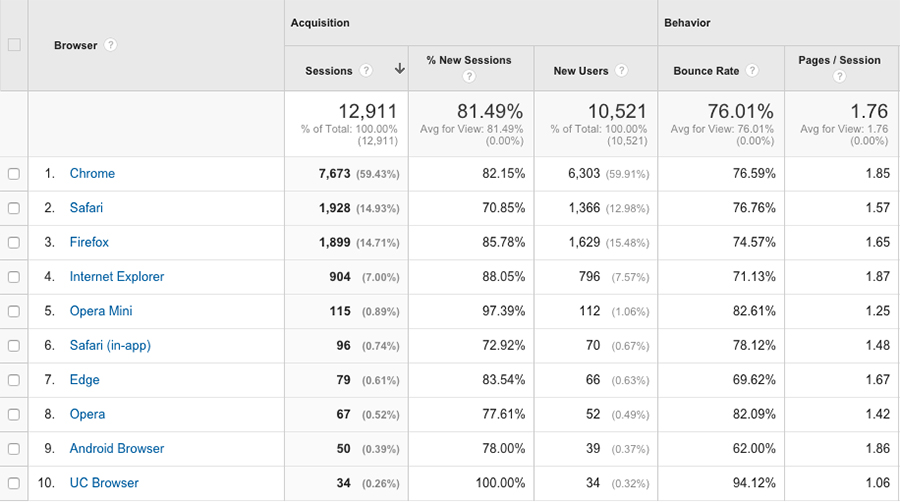 Google Analytics provides a variety of information about what browsers and devices your audience is using to view your website, including what percentage of your audience is using a particular browser.