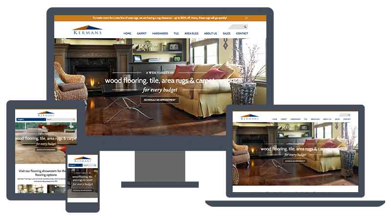 Designing your website to be mobile-friendly helps to make sure your website adapts to a variety of devices without having to test on each one. For example, the Kermans Flooring website was built responsively to adapt to any screen size instead to specific devices.
