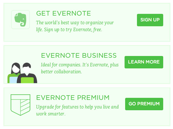 The Evernote blog includes a prominent CTA at the bottom of each blog post.
