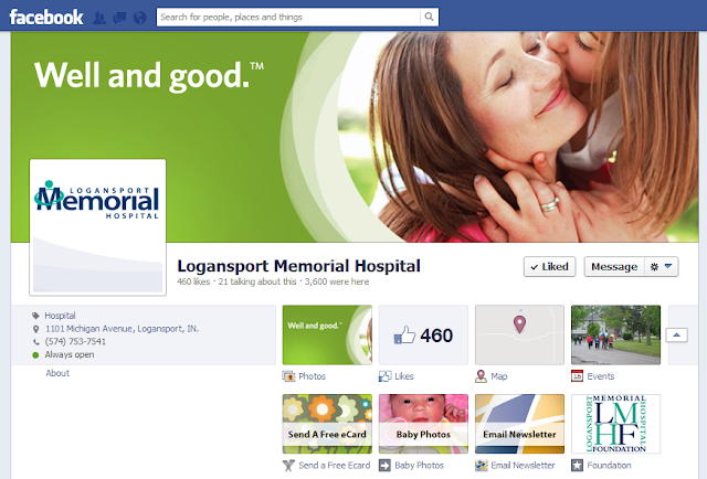 Logansport Memorial Hospital understands the importance of social media. As part of their social media marketing, we helped them develop and evaluate a strategy for Facebook. We helped them merge their confusing multiple Facebook pages, develop a plan of action with samples of posts and techniques, add custom tabs to important pages within their website, and also brand the page to match their new marketing and overall brand.![]() |
