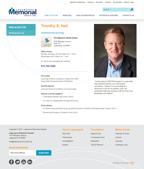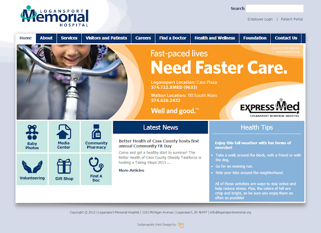 TBH Creative has been working with Logansport Memorial Hospital since 2011. In 2012, we upgraded their technology as a primary focus. We gave them a quick facelift at that time, but planned for a more thorough redesign and focus on content in 2013.