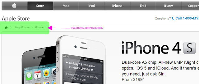 and they use very traditional breadcrumbs on deep level pages of the website.