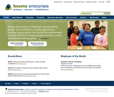 Who is Bosma Enterprises? Located in Indianapolis, Indiana, Bosma Enterprises is dedicated to empowering people who are blind or visually impaired by creating opportunities that lead to the achievement of each individual’s employment, economic, social, and self-determining goals.