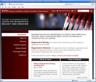 New Web Site for The Indiana University Center for Regenerative Biology and Medicine
