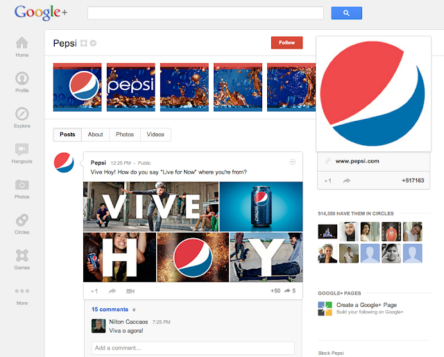 Pepsi also regularly updates their Google+ Page. They have a few photo albums, but do not have any videos. Something simple they could add are a few of their commercials. Some businesses don’t feel the need to post videos on their social media pages, and that’s okay! Do what you think will be best for your brand.