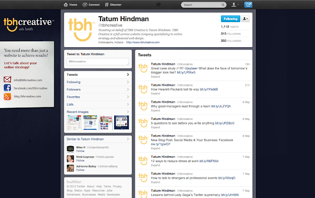 TBH Creative uses Twitter to display recent client work as well as network with other web professionals. Twitter makes it easy to share inspiration, thoughts, and ideas with a large group of people.