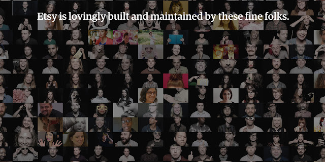 | The Etsy team page includes a collage of its many team members, displaying its personality as a company. |