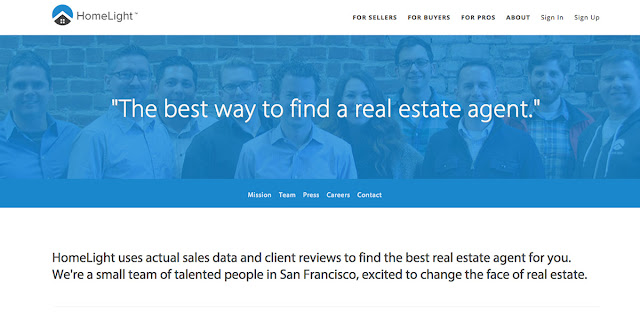 | HomeLight features its team prominently in a banner photo on its about page, along with individual team photos. |