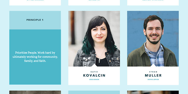 | SparkBox features company principles throughout it’s team photos to give visitors a better idea of what their company is about. |