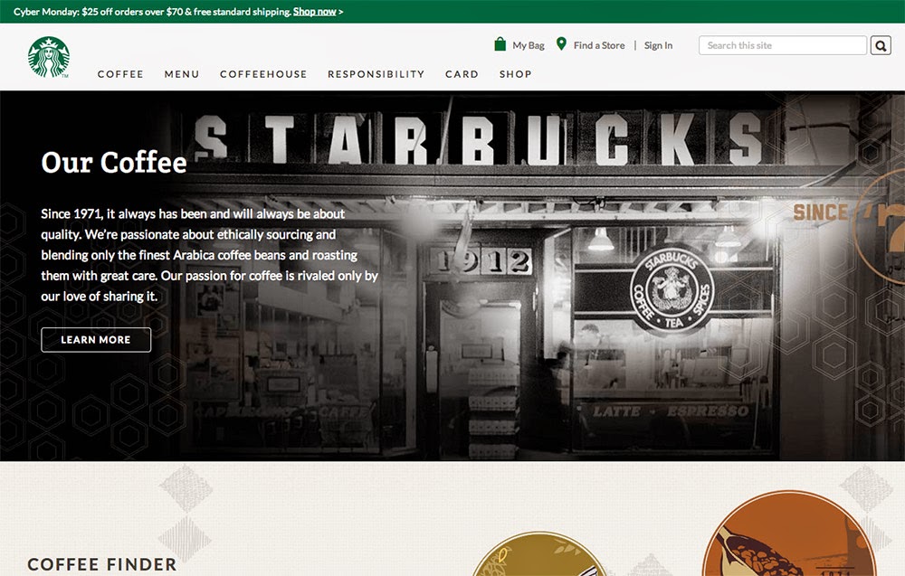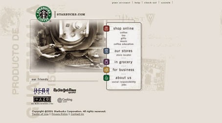 We’re not the only company whose branding and presence online has changed dramatically over the past ten years. Here are some before and after examples you might remember from Starbucks.![]() |
