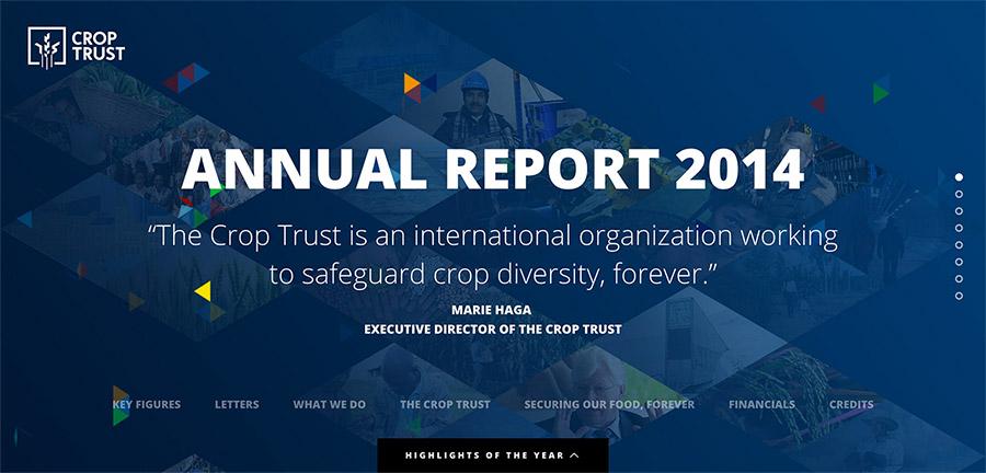 This annual report uses a variety of content types to display report data. It’s key figures are made more interesting through the use of graphics and animation. It links out to videos and articles to provide more information for each area as well, and even includes an interactive timeline of highlights from the year. View the report