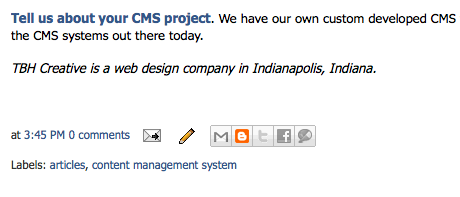 TBH Creative is a small and energetic website company in Indianapolis. We offer a custom developed content management system for flexibility, easy in-house maintenance, and robust functionality.