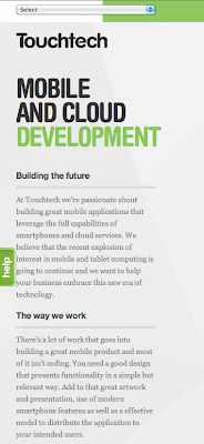 Touchtech has a beautiful website. When you look at the website from your mobile device, it automatically resizes and rearranges everything to fit your screen. You can get the same effect on a desktop or laptop computer by resizing the browser window to a smaller size.