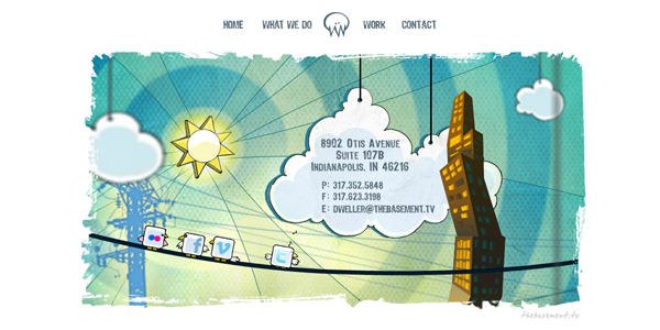 The Basement’s contact page is very entertaining. The social media birds hop around on the telephone wire as you’re on the contact page. They also have custom social media icons, which makes the website flow together very well.