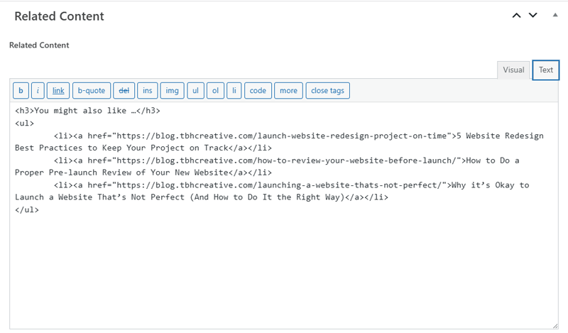 Here is an example from the TBH Creative WordPress blog of what it looks like to make website content updates to a post using HTML