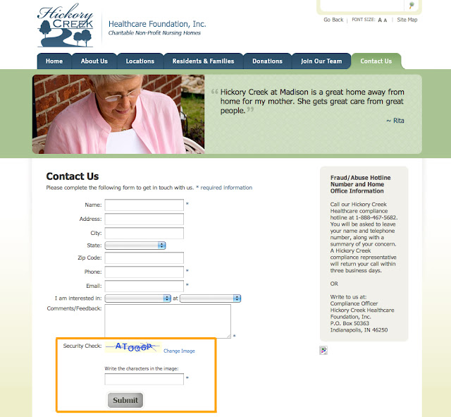 TBH Creative has included a few customized CAPTCHAs on Hickory Creek Health Care and CIRTA’s websites: