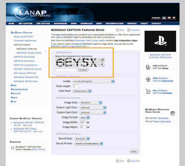 There are also several CAPTCHA examples on Lanap Software’s website: