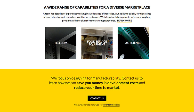 Stronger calls to action: The new site makes it easier for prospects to reach out to Aircom with strong directives and calls to action throughout. We also added a new “inventor checklist” to help people qualify themselves before contacting Aircom.
