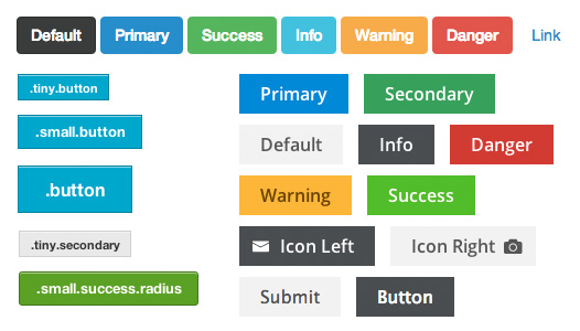 - Styles: Each framework comes with its own look and feel. For example, the image below shows the different button styles across a variety of frameworks. If you plan to use the default styles of a framework, make sure to check out its overall design.