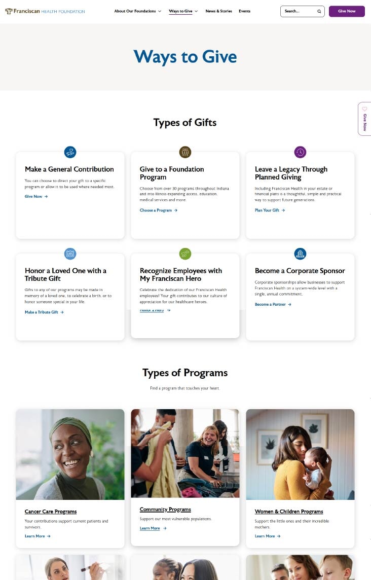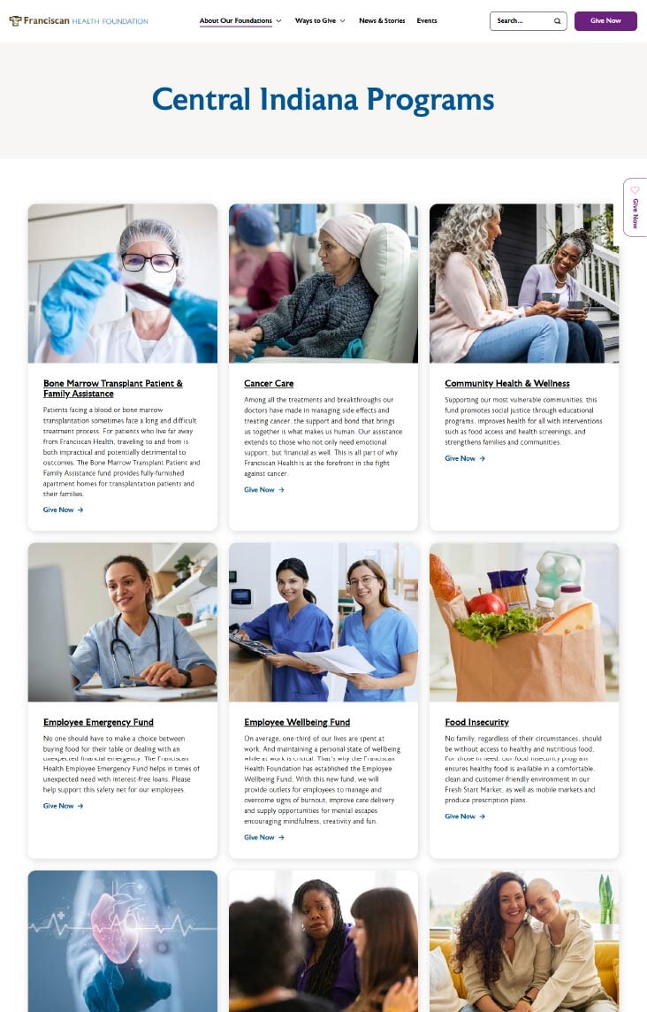 Healthcare fundraising website gets design refresh